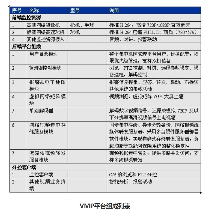 配合高清網絡數字攝像機我公司推出配套的高清網絡視頻監控管理平臺,整個平臺基于大型網絡視頻監控系統架構,采用模塊化設計,適用于不同類型的高清視頻監控系統;比如可以根據需要部署相應模塊實現本地高清視頻。諸如視頻轉發、報警處理等模塊可實現多結構、多用途的集中管理平臺,多級轉發可適應各種終端用戶的視頻訪問請求;報警處理可集成周界報警系統、消防聯動接口、門禁信號聯動接口、防盜報警聯動接口等,將這些系統與VMP管理平臺對接,可實現這些聯動信號與視頻監控系統聯動控制,比如聯動視頻彈出、報警聯動錄像、報警聯動監控攝像機預置位調用、電子地圖防區管理等等。